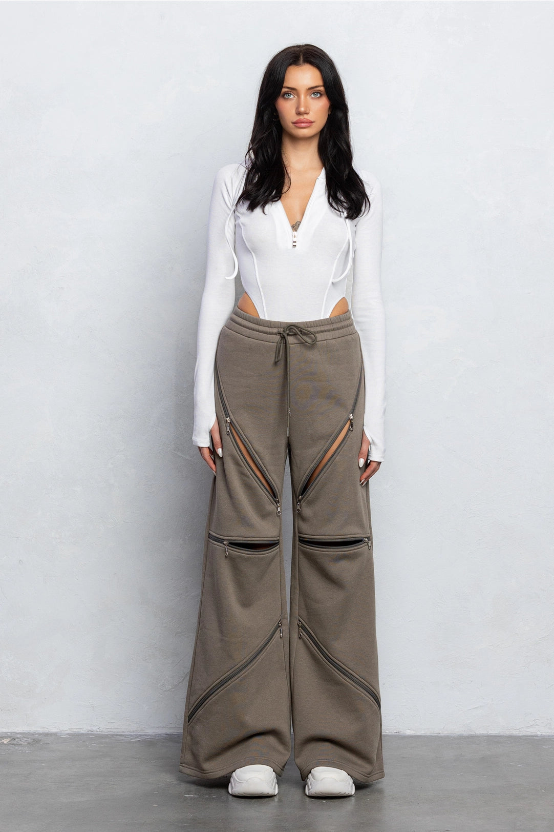 Ash Wide-Leg Sweatpants with Multi-Zipper Cutout Design