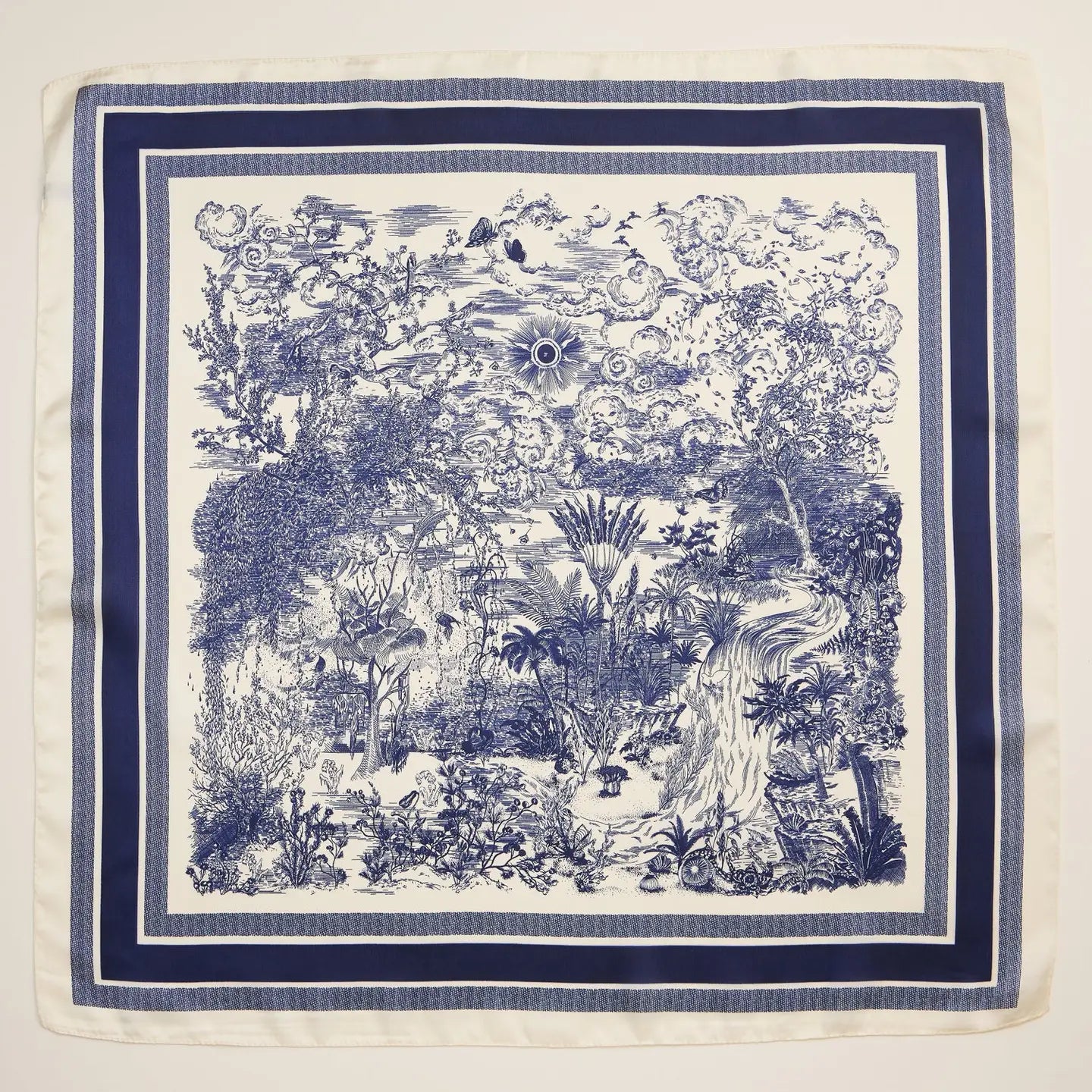 Blue and White Toile Print Silk Bandana Scarf