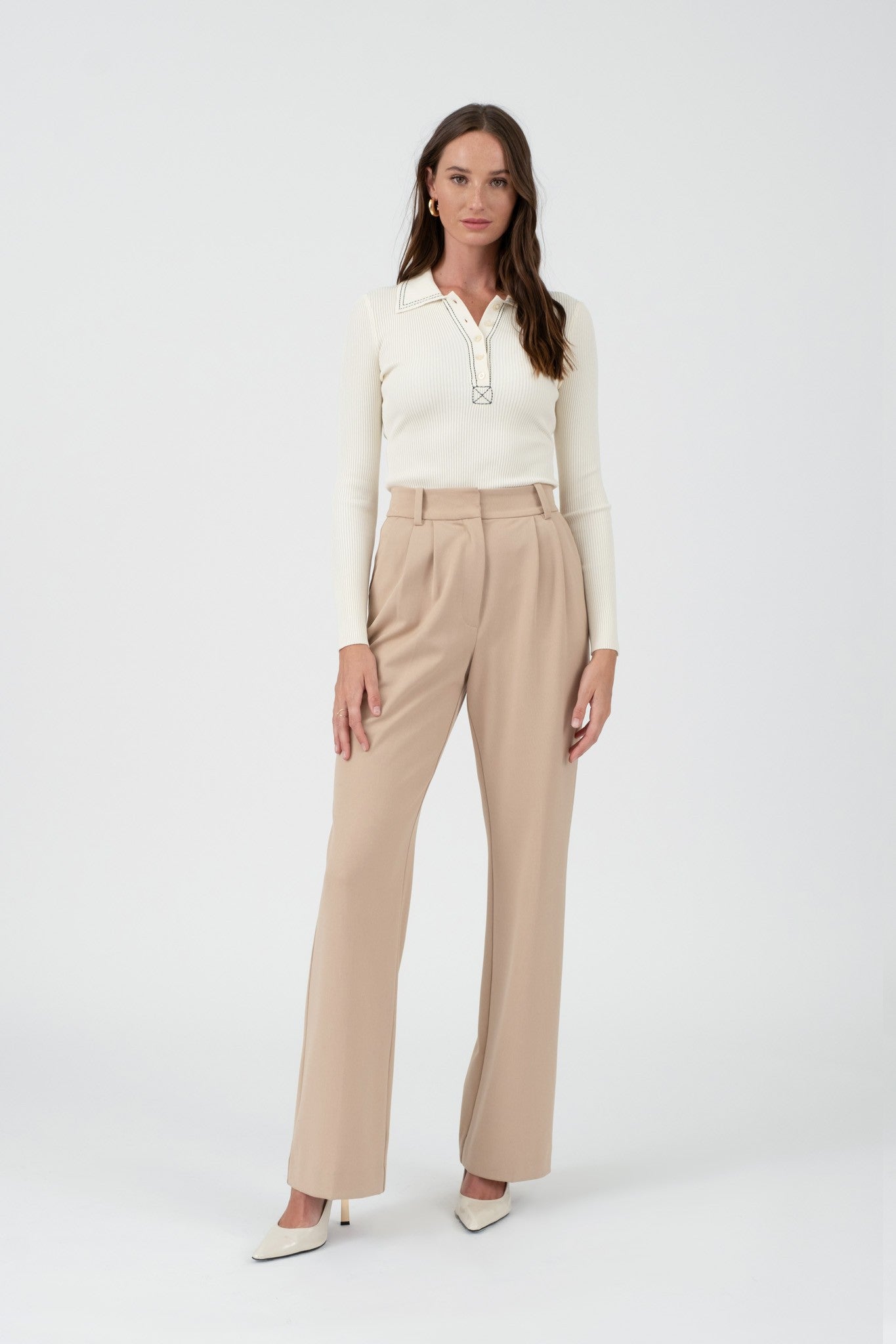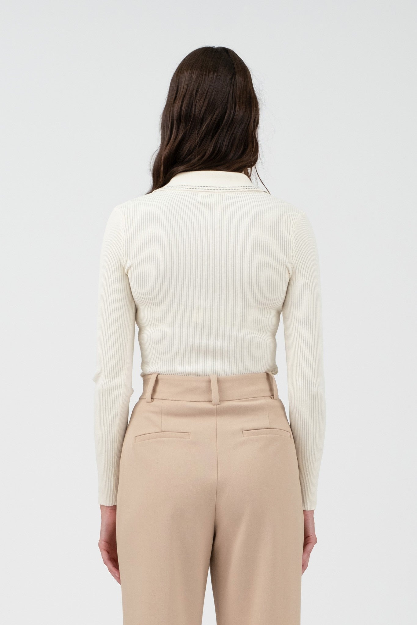 CONTRAST STITCH COLLARED SWEATER KNIT TOP