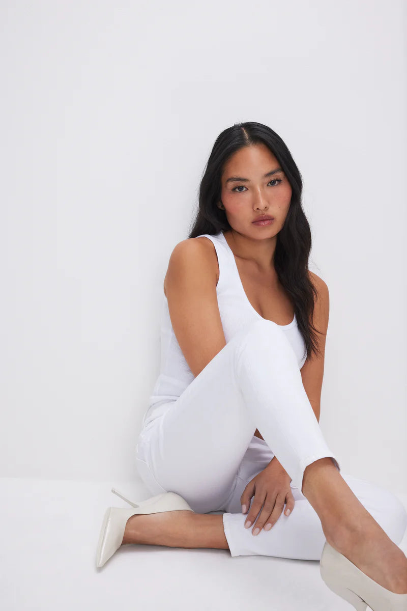 Elevate your denim game with our GOOD PETITE SKINNY JEANS. Designed with a petite rise and skinny legs. Featuring 5-pockets and reinforced belt loops, they are both functional and stylish. The gap-proof waistband and tummy smoothing technology make these jeans a must-have for a flattering look. Available in a chic white wash. Take on the day with confidence and style!