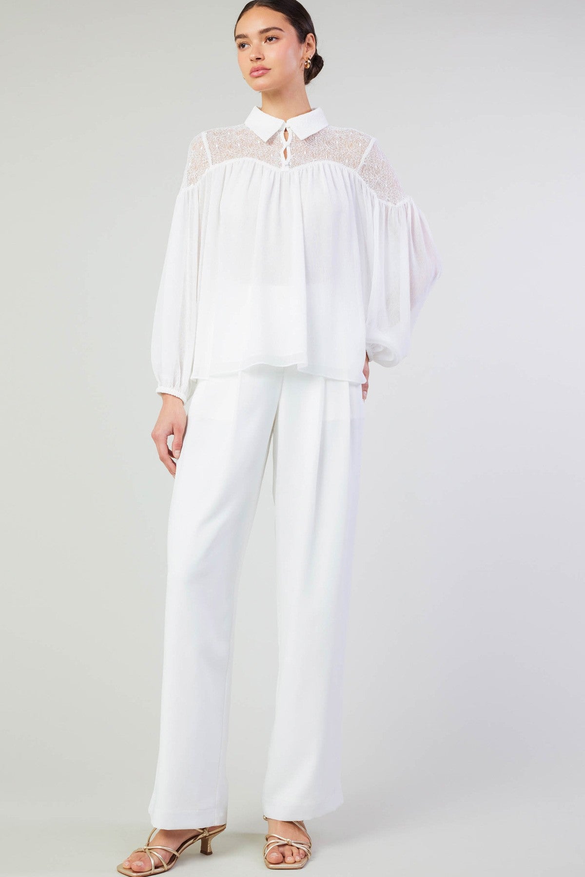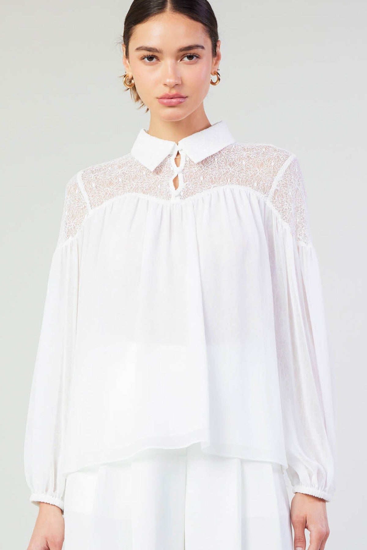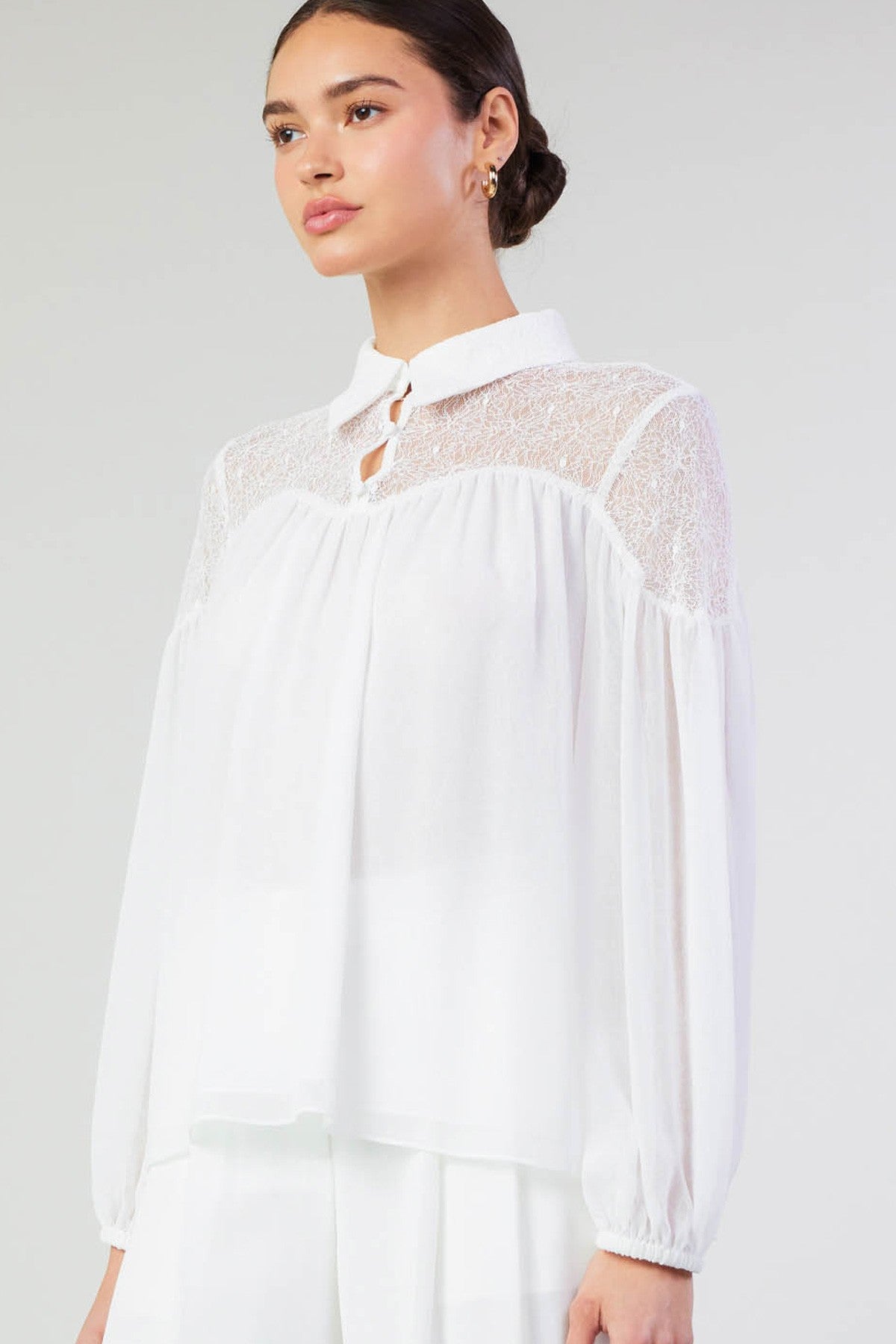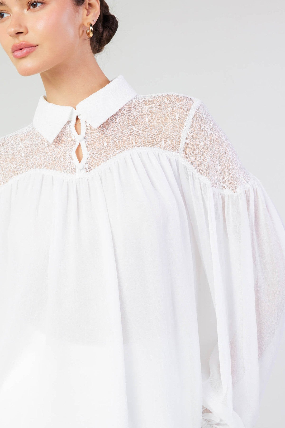 LACE DETAIL BUTTON-FRONT BLOUSE