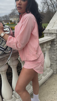 NYLON STRETCH WOVEN TENNIS JACKET PINK