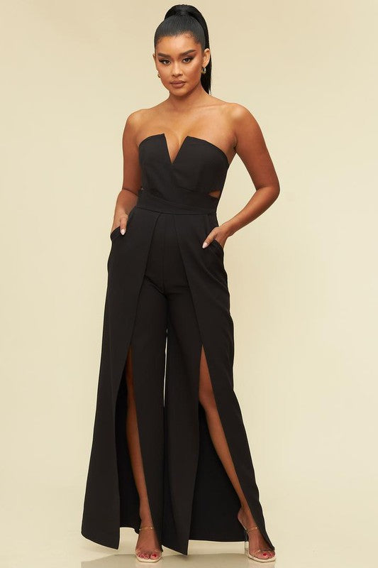 Experience the perfect combination of style and comfort with our OPEN SLIT BUSTIER JUMPSUIT. The open slit design adds a touch of sophistication to this bustier jumpsuit, while the bustier top provides the perfect fit and support. Elevate your wardrobe with this must-have piece.