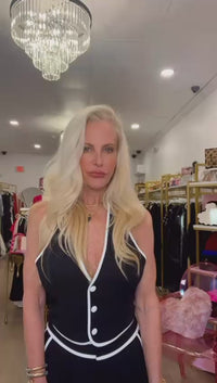 These black pleated trousers feature a contrast edge detail, adding a touch of sophistication to your wardrobe. The pleated design offers a comfortable fit, making them perfect for a day at the office or a night out. Elevate your style with these chic and versatile trousers.