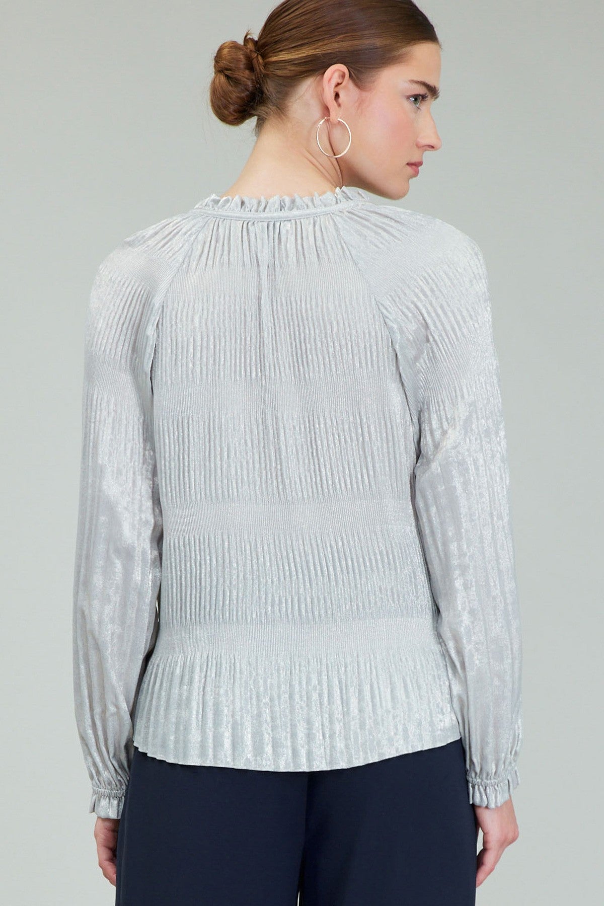 RUFFLED SPLIT NECK PLEATED BLOUSE